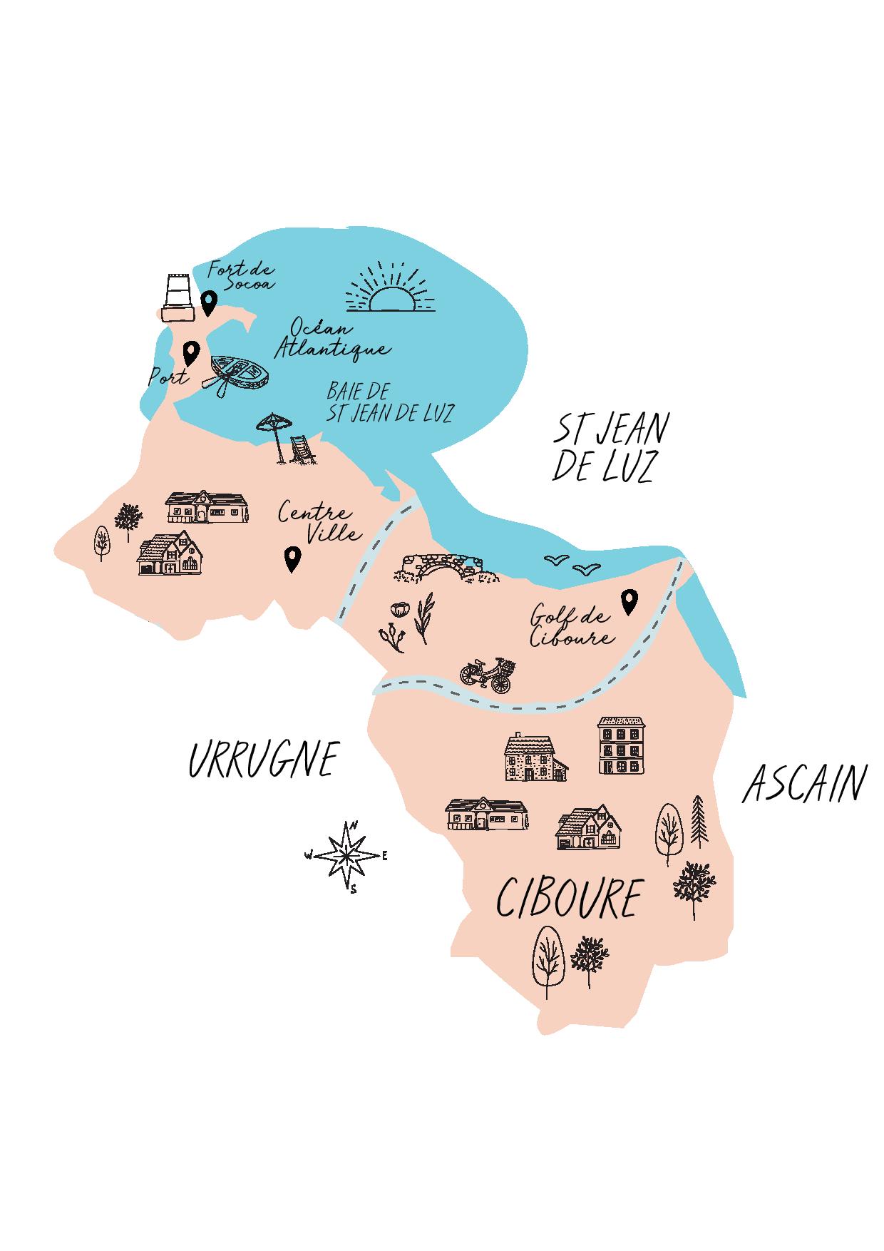 Le quartier résidentiel de Bordagain situé sur les hauteurs de Ciboure avec sa vue sur la baie de Socoa est très prisé avec notamment des biens immobiliers de luxe, des résidences de standing et des commerces de proximité.